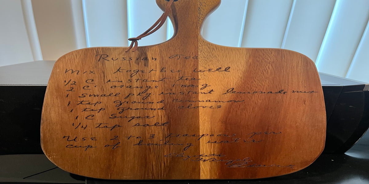 There is no better way to forever keep your favorite recipe from your youth or loved one then to have it hand burned in your loved ones handwriting on a cutting board to display for all to enjoy.